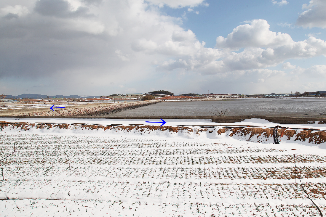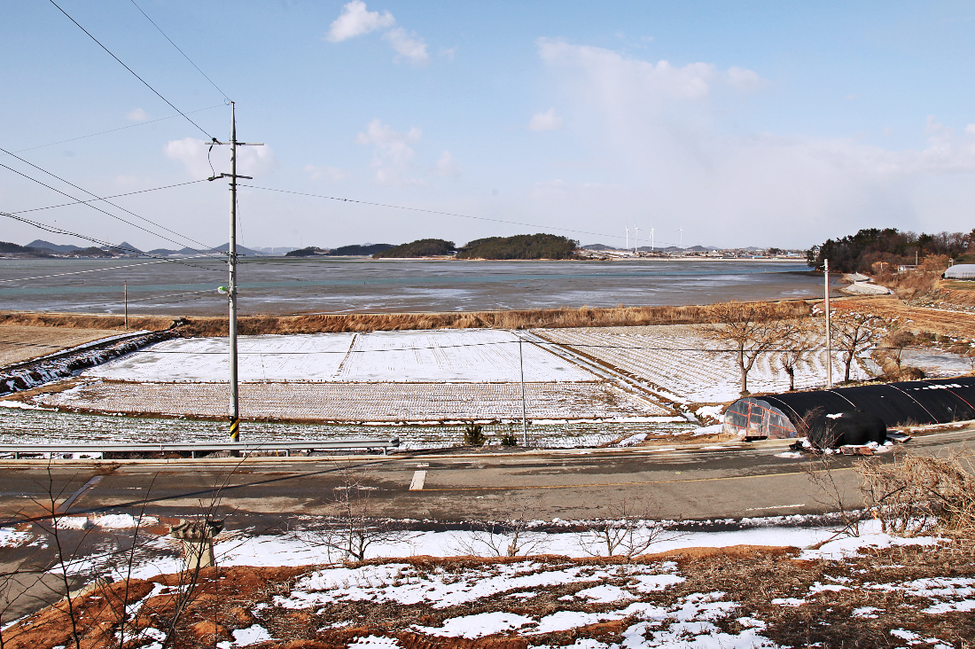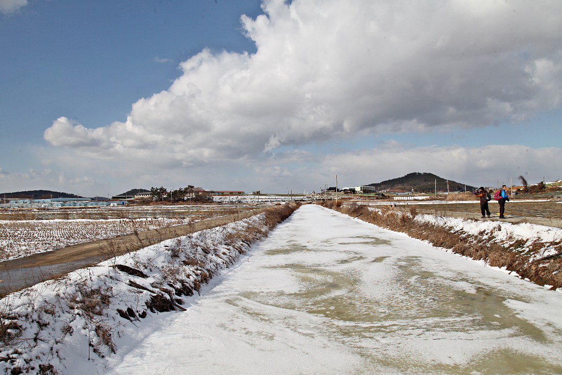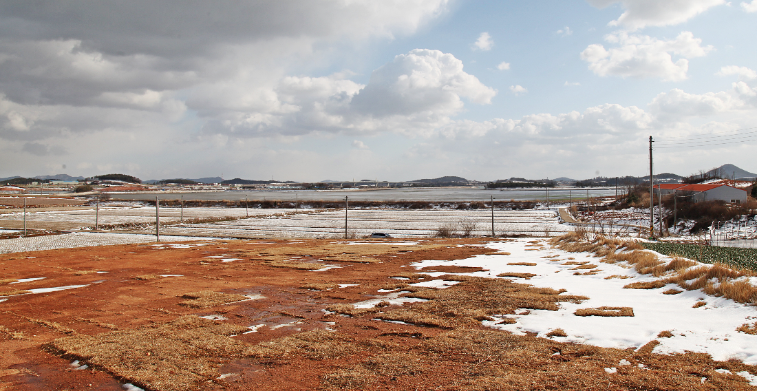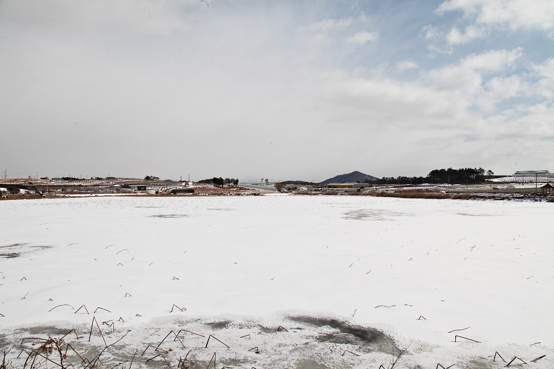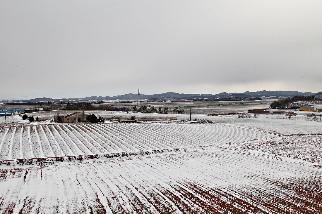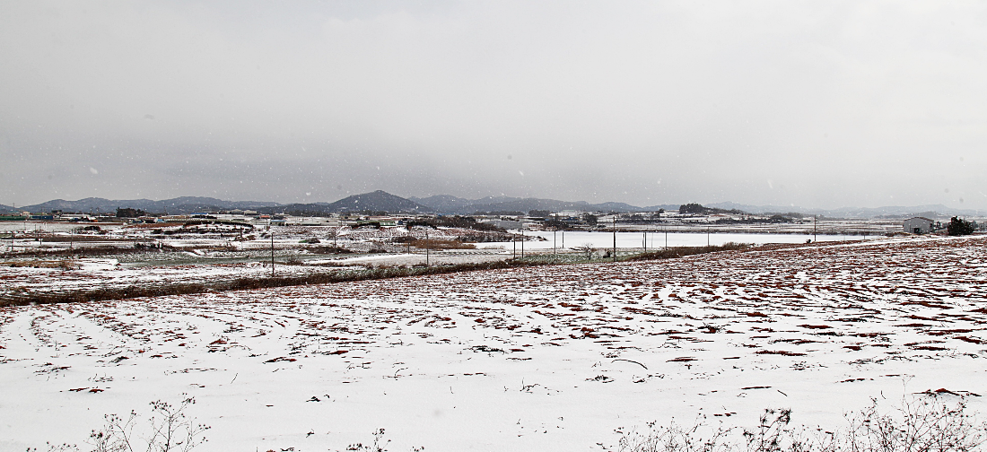 하지만 구릉지대를 포함한 들녘은 아직도 하얀 눈밭이라 이따금 구름 사이 내리는 햇살에 눈이 부시어 황홀한데, 드넓은
