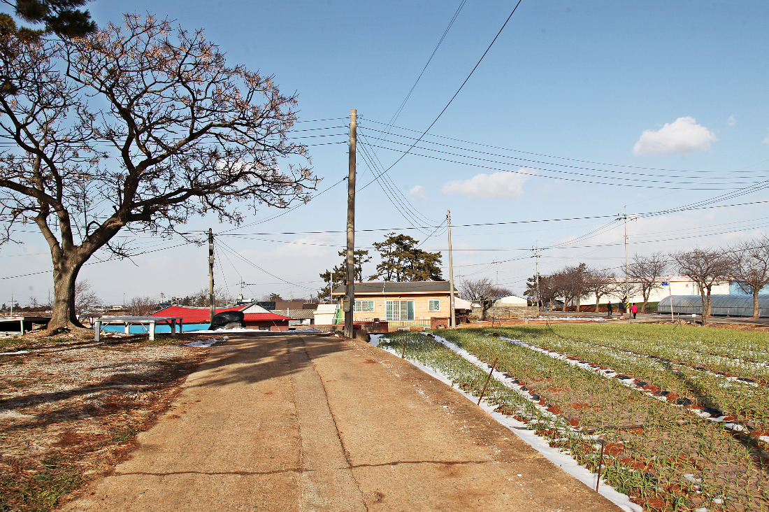 ▼ 송현리 용동마을 회관 앞 서해랑길 21코스 들머리