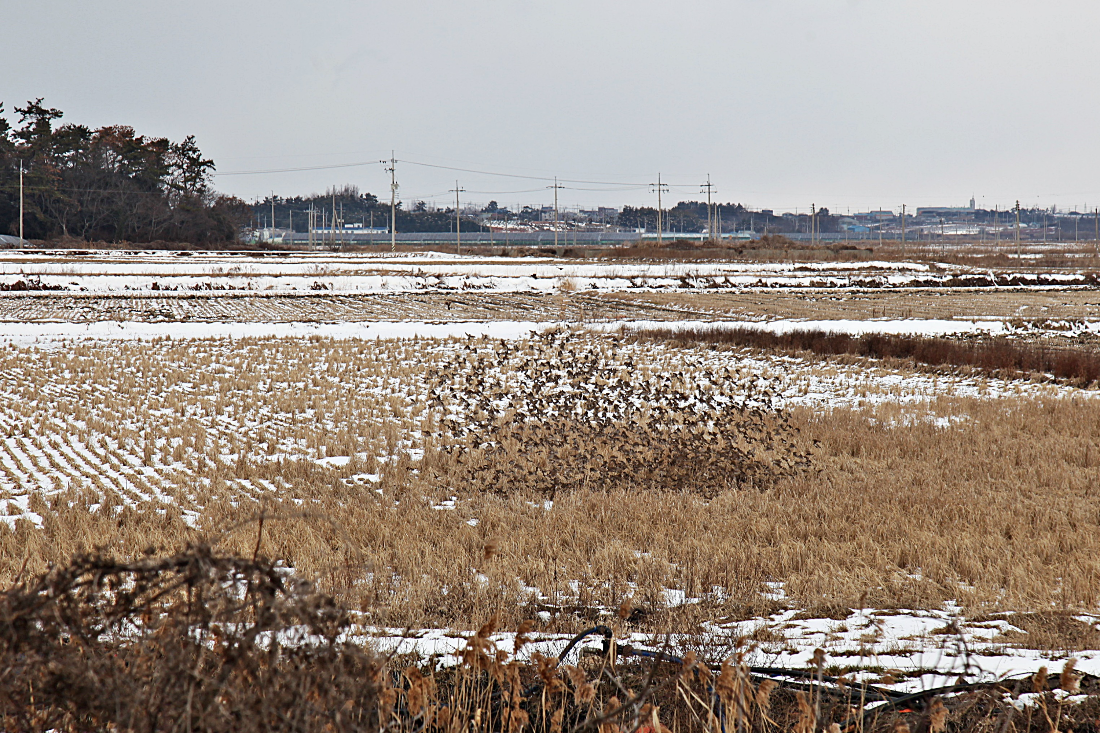 ▼ 동암 4리 포구 앞 조간대의 겨울 철새들