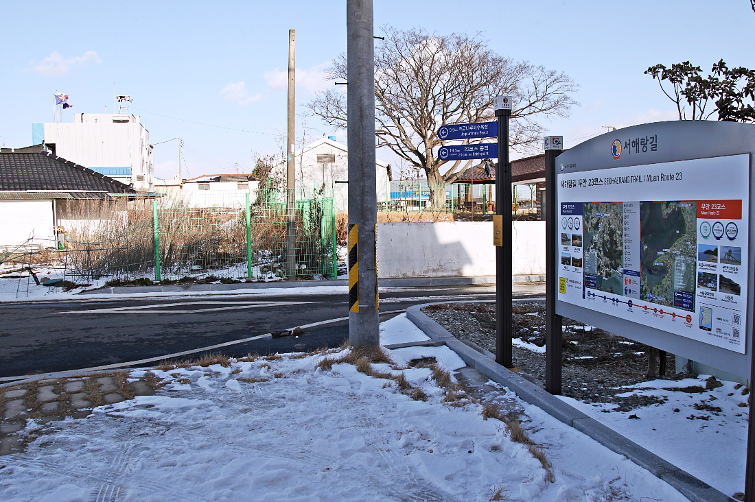 ▼ 삼거리 옆 서해랑길 22코스 날머리 안내판