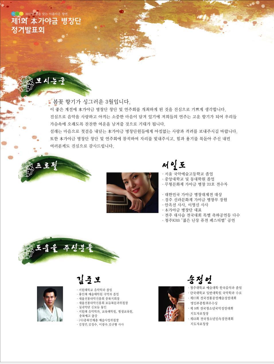 [스크랩] 제 1회 本가야금 병창단 정기발표회/ 3.19 오후 7시 서원대학교 콘서트홀 작성자뾰로롱 공주|작성시간11.03.15|조회수111 목록 댓글 0 글자크기 작게가 글자크기 크게가 다음검색 스크랩 원문 : 새울전통타악진흥회 충북지회 현재 게시글 추가 기능 열기 북마크 공유하기 신고 센터로 신고 댓글 댓글 0 댓글쓰기 답글쓰기 댓글 리스트
