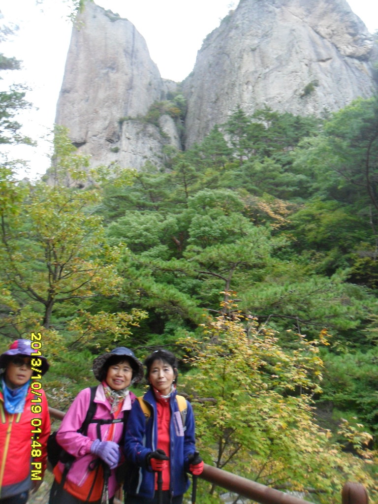 솔부엉이 삼거리 여기서 정상과 폭포 가는길이 갈라지는데 우리는 선두를 놓치는 바람에 길을 잘못 들어 폭포쪽으로...