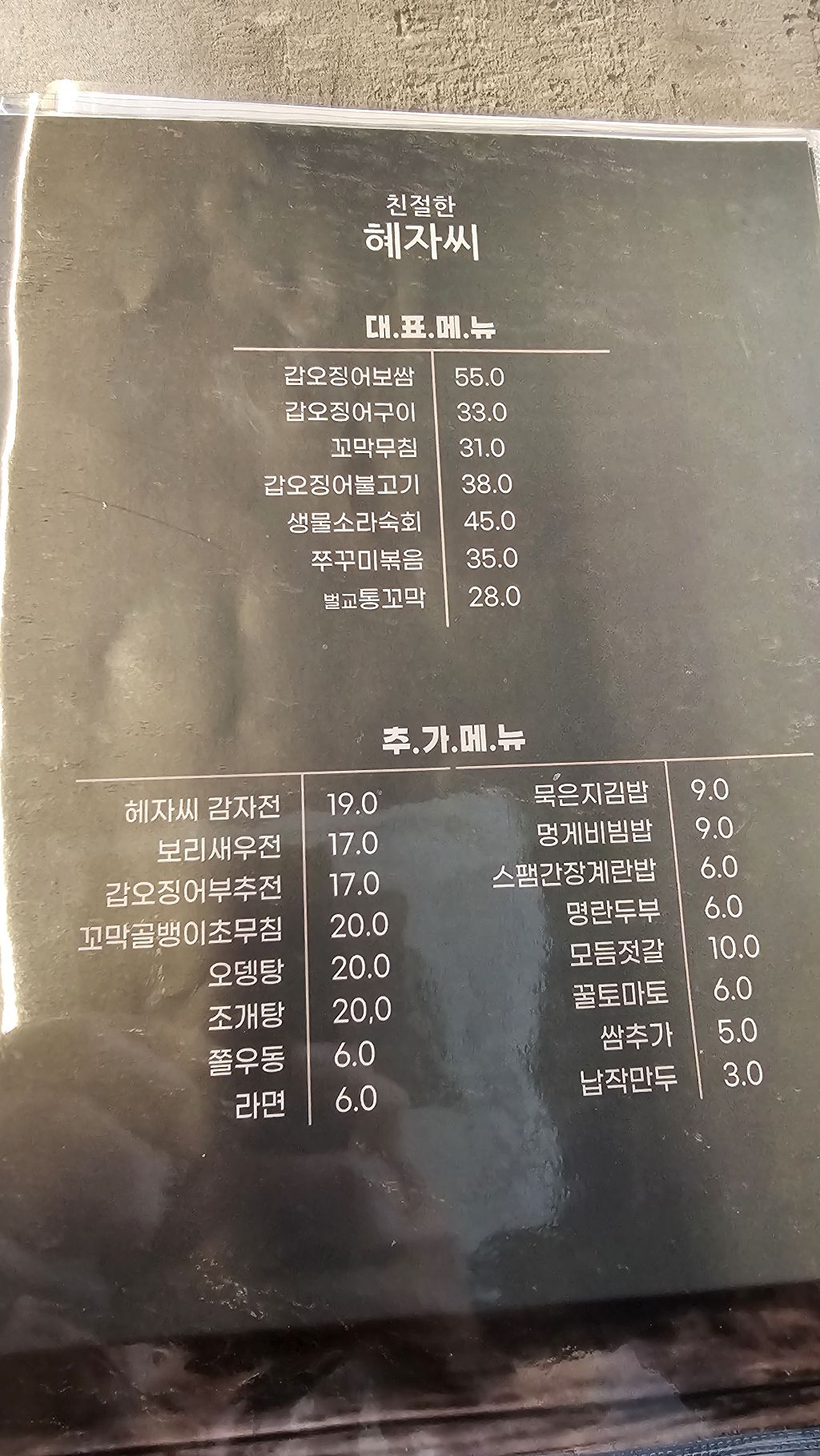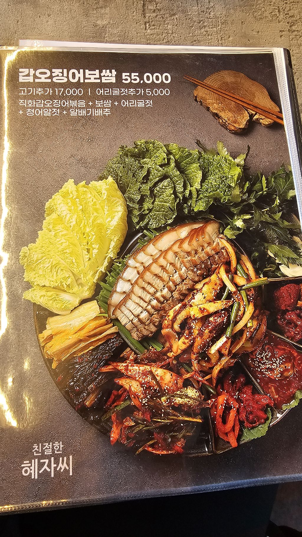 • 갑오징어 보쌈, 갑오징어 부추전 : 푸짐하게 나오는 한상에 달달하고 시원한 소맥한잔~