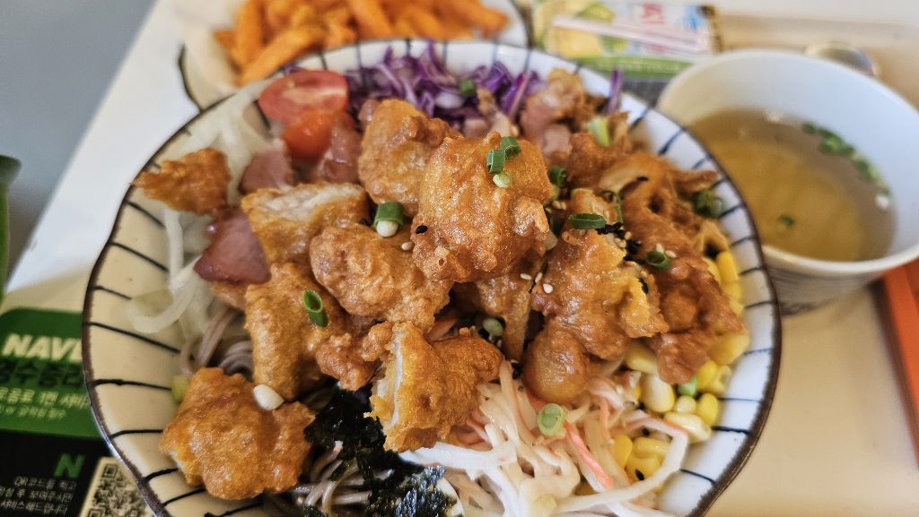 • 치킨포케 : 겉은 빠삭하고 안은 촉촉한 포케~ 메밀면에 스윽 스윽~ 비벼서 냠냠!