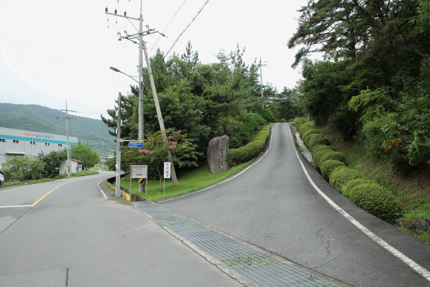 국도변 성지 주차장, 대형 버스는 이곳에 주차를 하고 올라 가셔야 합니다. 십자가의 길 기도를 드리며 올라 갈수있게 14처가 내려올땐 로사리오 길이 있습니다.
