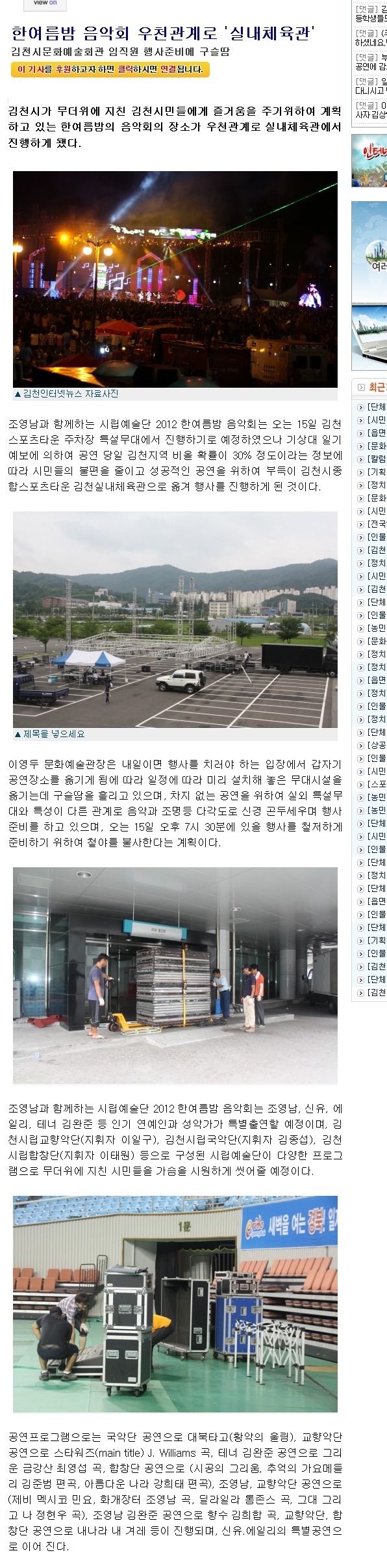 낼15일 왕자님 김천공연이 실내체육관으로 옴긴다는 인터넷 뉴스가 떠서 참고 하시라고 옴겨왔습니다