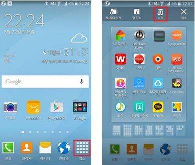 [그림 2] 안드로이드 앱스 화면에서 앱 삭제