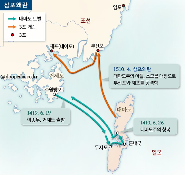 중종5년(1510)에 삼포왜란이 발발하였다가 진압되었고