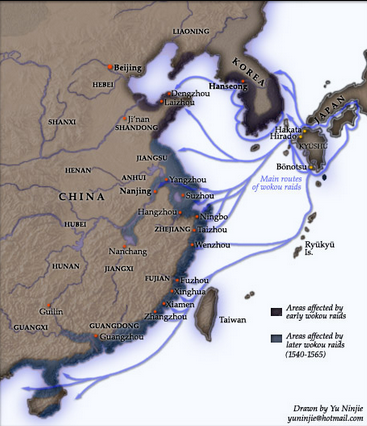1540년대 부터는 일본 큐슈지역 다이묘들과 결탁한 왕직같은 중국 해적세력들이 활동하기 시작하여 동아시아의 해역은 혼돈에 빠져들기 시작합니다.