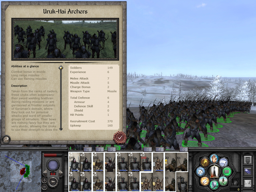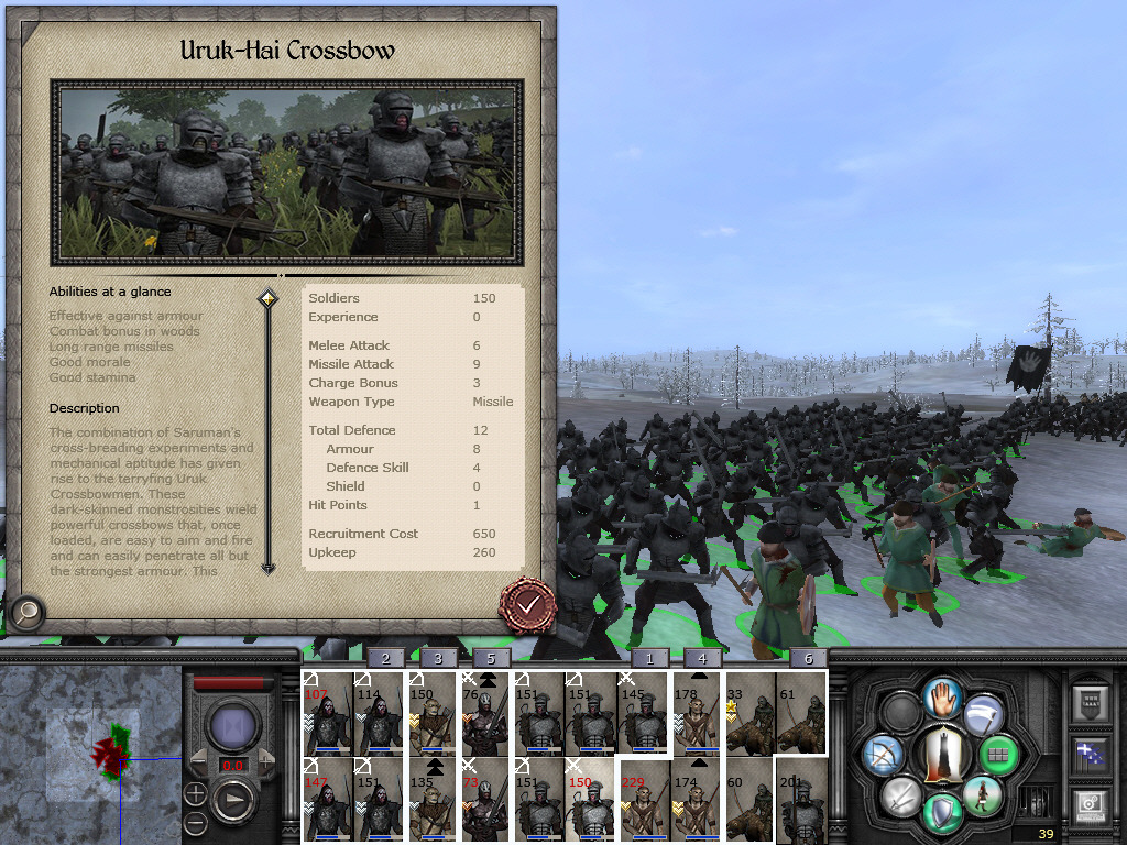 장점 : Fields heavily armored uruk-hai units and terrifying wargs.