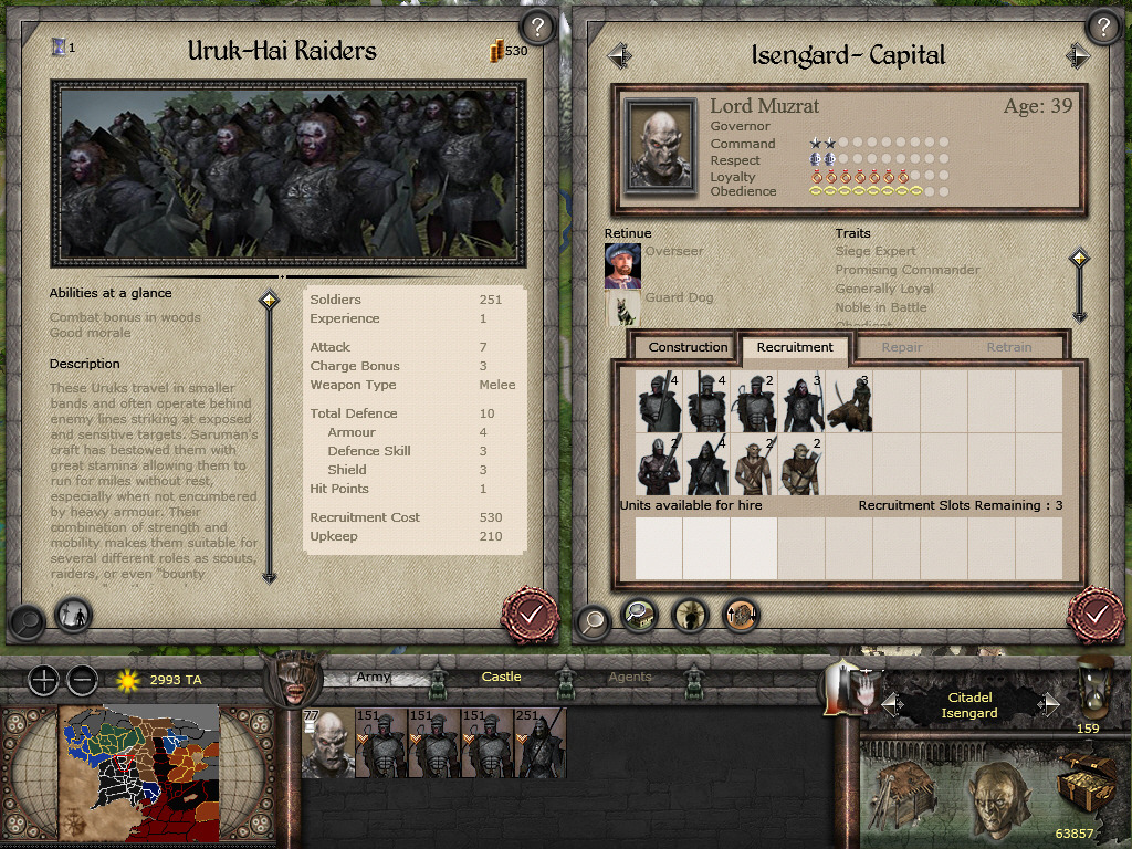 우르크 보병과 똑같습니다. 고용비도 유지비도 더 싸기 때문에. 걍...우르크 석궁병으로만 밀고 가도 되겠지요.