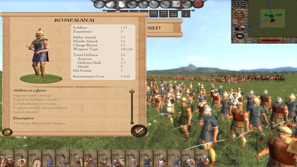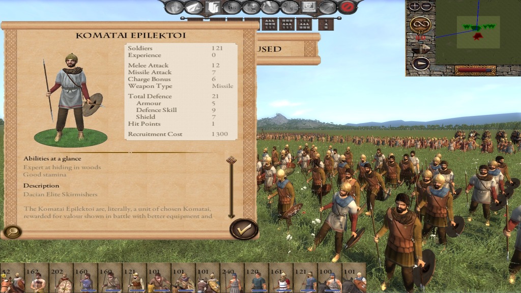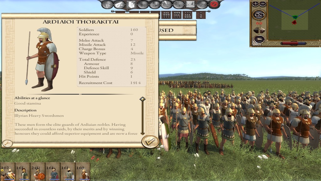 일단 트라키아 로스터는 헬레니즘 지역 로스터에서 소개했던 두 유닛 (katoikoi thraikes, raskumezenai)을 포함해서 완성된 상태고, 다키아의 경우는 엘리트 유닛 한두 개 정도가 빠진 것 같습니다. 일리리아는 지금까지 분위기로 볼 때 새로운 세력이 추가될 가능성이 높아 보이는데, 아직까지 확정 발표를 한 적이 없으니 알 수 없습니다. 신 세력이 등장하면 일리리아 유닛들도 여럿 추가되겠죠.