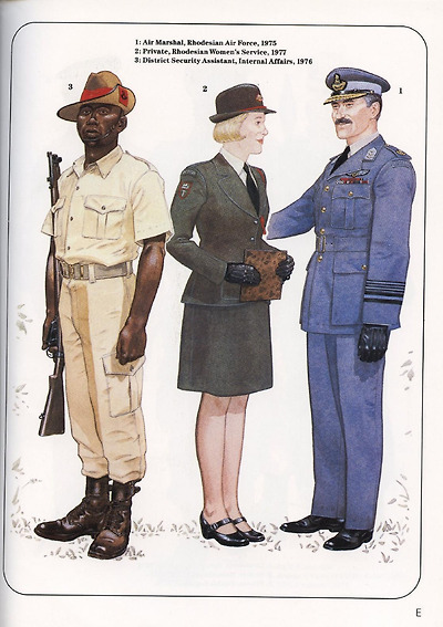 로디지아 공군이 달고있던 "왕립" 이라는 접두어는 1970년에 폐지되었으며, 동시에 국적표지가 변경되고 계급장의 로디지아 사자가 폐지되었습니다. 공군은 육군이 여성을 받아들이는 것보다 그 정도가 완만하긴 했지만 완전히 인종적으로 통합되어 있었습니다. (첫 여성장교는 1979년 12월에 탄생했습니다.)