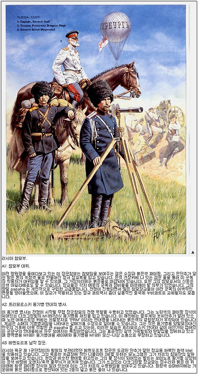 러일전쟁 전의 러시아군은 극동지역에 여섯개의 전열기병 대대와 36개의 코사크 기병대대를 배치해 놓은 상태였습니다. 이들은 1904년 3월까지 207개 대대로 증강되었는데 이중 63%에 해당하는 부대가 코사크인 부대였으며, 나머지는 용기병들이거나 승마상태의 국경 수비대였습니다. 전쟁에 투입된 비 코사크인 기병대대는 기본적으로 세개 용기병 연대 -프리모르스키, 네진스키, 체르니코프 연대- 와 제 42, 48 국경수비대 승마대대로 이루어져 있었습니다. sotnias (대대규모) 라고 불린 여섯개의 코사크 국경 수비대는 국경 수비연대를 구성했으며, 전쟁기간 내내 만주군에서 활동했습니다.