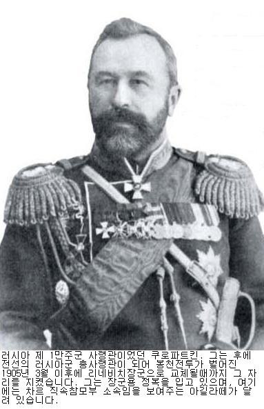 6월 말: 일본육군 제 1군 (지휘관 구로기) 와 제 4군 (지휘관 노즈) 이 요양을 향해 진격했습니다. 결국 쿠로파트킨 장군은 전략적인 Motien 지역의 통로를 포기했습니다.