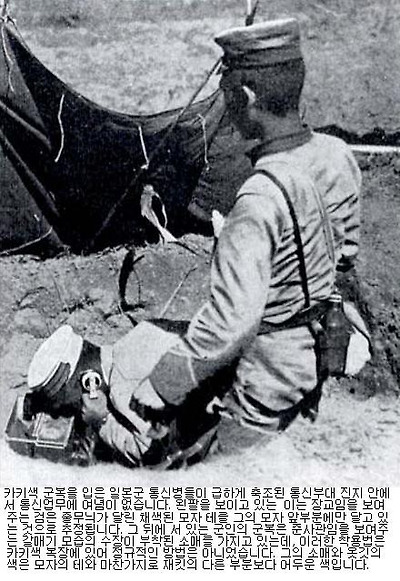 개전 당시의 러시아와 일본군 모두 이미 1880년대에 채택된 구식 복장을 입고 있었습니다. 러시아군의 다크그린 빛 M1881 군복과 일본군의 다크블루빛 M1886 군복 모두 구시대 군복을 특징을 갖추고 있었습니다. 영국군은 이미 보어전쟁을 통해 현대식 소총의 위력에 적합한 "위장효과가 있는" 군복을 필요성을 깨달은 바 있었지만, 러일전쟁의 양측은 실전에서 비싼 값을 지불하고서야 그러한 군복의 개발과 도입의 필요성을 느끼게 되었습니다. 많은 나라에서 온 관전무관들이 이러한 변화를 목도했음에도 불구하고 몇몇 나라들 -특히 프랑스- 은 1914년 8월까지도 그들의 알록달록한 군복을 완고하게 유지했습니다.