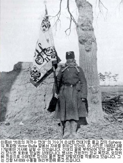 전해지는 바에 의하면, 이들 중국인 보조병들은 러시아 군복을 공급받지는 못했지만, 개머리판에 "러시아 제국정부의 재산임" 이라는 각인이 새겨진 모신-나강 소총으로 무장했다고 합니다. 아마도 임시변통으로 그 지역에서 충원된 것으로 보이는, 말을 탄 소규모의 중국인 보조병들이 일부 러시아 기병대에 배속되는 경우도 있었습니다. 이러한 보조기병들은 전투보다는 전령과 정찰부대로서 운용되곤 했습니다. 비록 중국인으로 보이는 부대가 러시아 장교들 앞을 행진하는 모습을 담은 사진이 남아있긴 합니다만, 러시아 고위사령부가 이들의 존재를 정식으로 인정한 적은 없습니다.