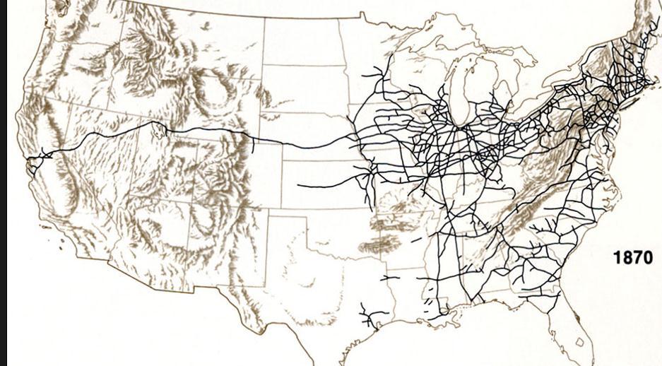 1870년대 당시 미국의 철도 건설 현황