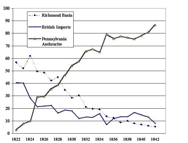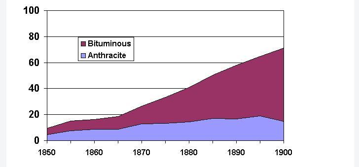연탄사용: 영국산 연탄 수입은 1800년대 중반에 오면 미국에서 10퍼센트대로떨어지기시작하고 대부분이 자급자족이가능한상태가된다.