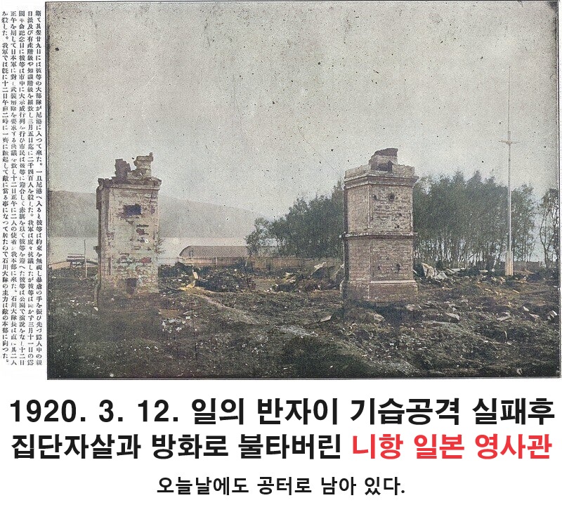 오늘날 일본의 몰지각한 사람은 1920년 니항사건이 일본 시베리아 침략군과 일본인 거류민 자경단원, 가라유키상 밀정, 러시아 백파 잔존 병력의 반자이 기습공격으로 발생하였고,