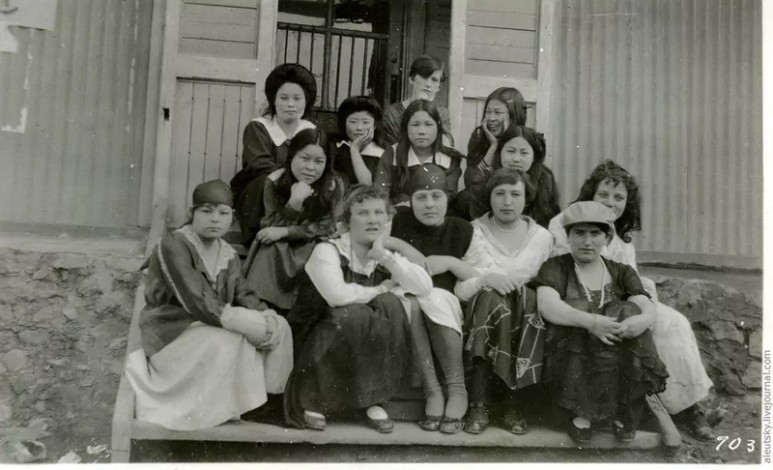 1918년경 니콜라예프스크 항구의 여성 가라유키상 은 최소 90명 이상이었으며
