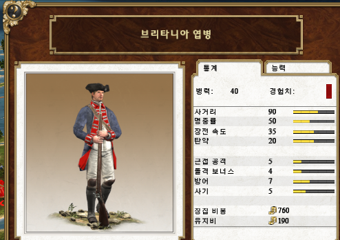 영국 본토에서만 고용 가능한 라이플 경보병입니다. 엄청난 사거리와 명중률로 적의 숫자를