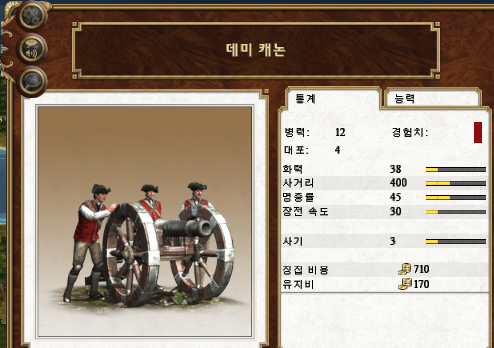 가장 초기에 생산 가능한 대포입니다. 탄종은 일반적인 포탄 뿐입니다. 데미 캐논이 약간 더