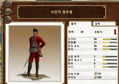 1개 연대밖에 고용할 수 없는 대영제국 고유 유닛입니다. 근접전 능력치가 약간 딸린다는 것을