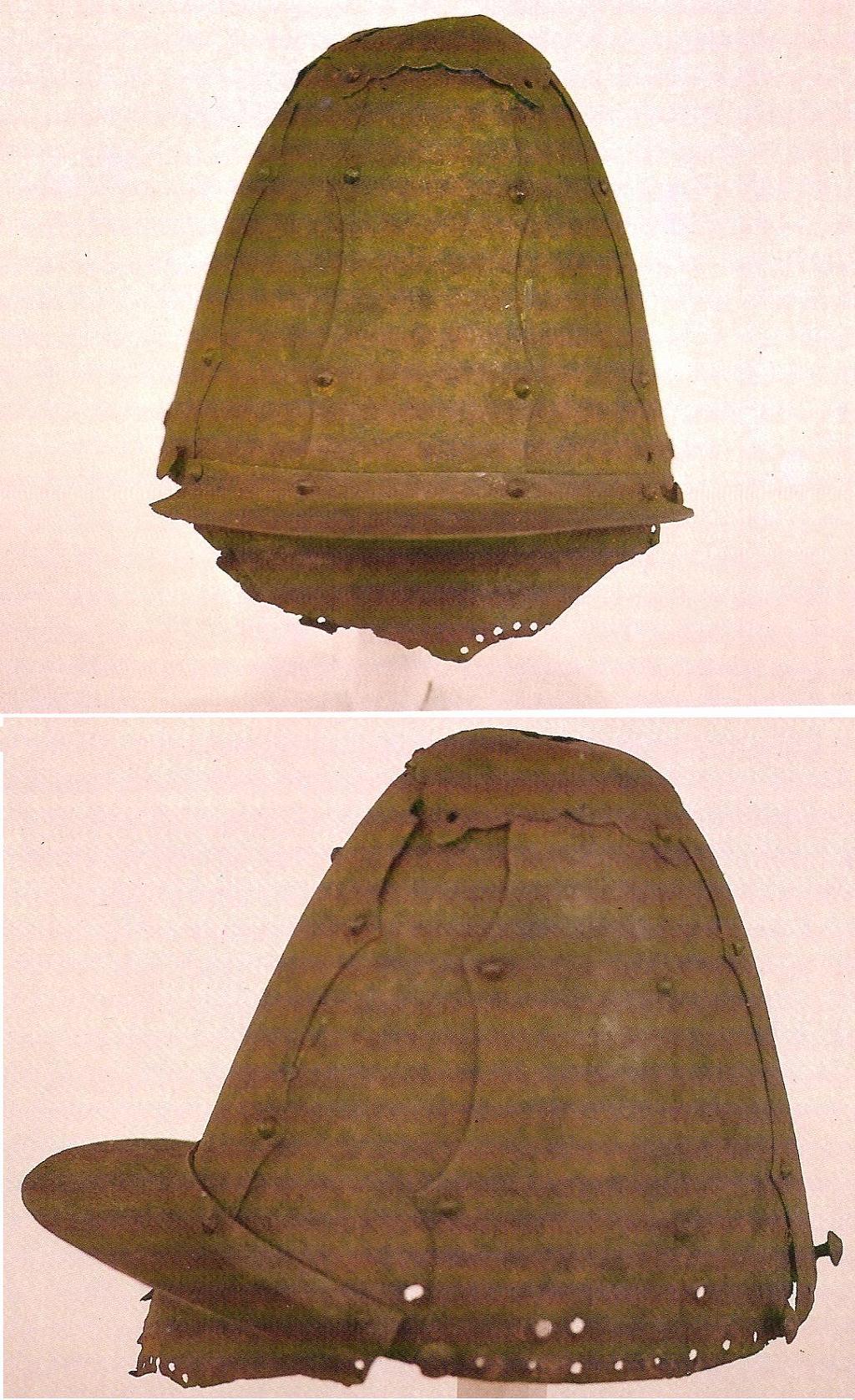 제가 개인적으로 분석해 본 결과로는 헤드기어처럼 정수리 부분이 뚫려 있던 것 같습니다. 예전에 디코에서 한교님께서 한반도의 가죽제 헤드기어가 진화한 형태가 아니었냐고 이야기 하신게 생각납니다(근데 그글이 디코 폭파되면서 같이 날아감-_-). 아무래도 한교님의 예상이 맞아들어가는듯... 보시면 답글좀 해주세요.;;;