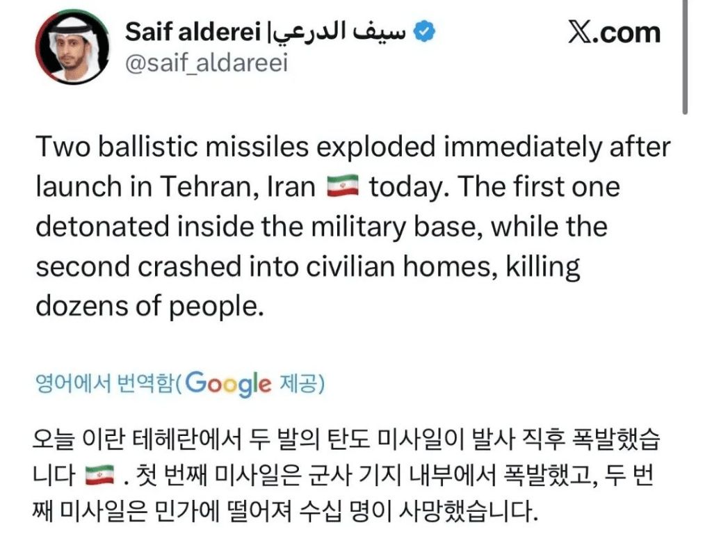 [스크랩] 이란 미사일 발사 실패로 자국민 수십명 사망 작성자백두대간.|작성시간26.04.05|조회수114 목록 댓글 1 글자크기 작게가 글자크기 크게가 다음검색 스크랩 원문 : 버킷리스트(Bucket list) 현재 게시글 추가 기능 열기 북마크 신고 센터로 신고 댓글 댓글 1 댓글쓰기 답글쓰기 댓글 리스트 작성자백두대간. 작성자 본인 여부 작성자 | 작성시간 1시간 25분 전 new 북한이 참고해야~~누구 소행으로 합리적 의심이 드는지요~~?ㅎ혹시 배후가? 댓글 전체보기