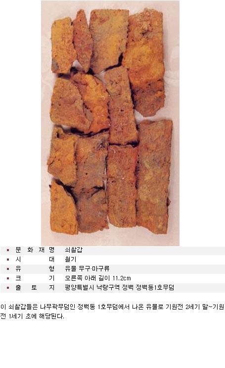 -시기/국적/재질/유형: B.C 2~ A.D1세기 / 낙랑 /옻칠한 가죽(혁제) / Ⅰ형