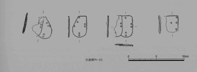 만주의 경우 노하심유적 부여찰갑 2종류가 전하며, 한반도-연해주 출토 유물중에는 완형출토품은 없고, 일부 갑찰만 수습됐습니다.