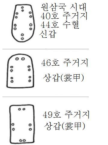 -한반도 남부지역에서도 최소 2종류(고-북방식찰갑, 어린갑 등) 이상의 다양한 형태의 갑주를 사용한 것을 알 수 있음.