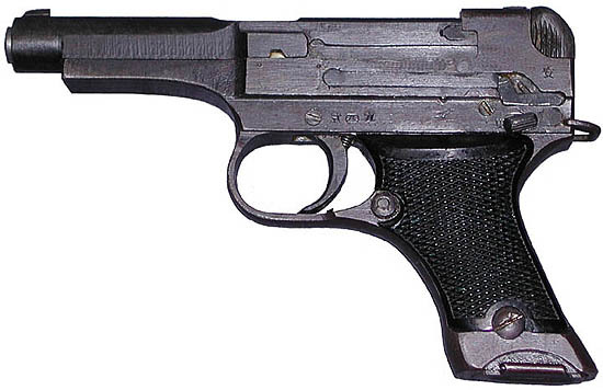 94식 권총- 아래 남부 권총을 보다 발전 시킨 명총, 방아쇠를 누를 필요도 없이 측면만 치면 발사된다. 그래서 사용자가