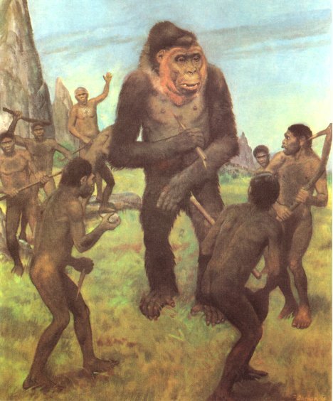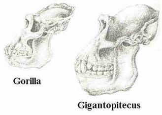 지금으로부터 200만년전인 선신세부터 50만년전인 홍적세까지 살았던 직립보행이 가능했던 초거대 유인원입니다. 몸길이 3m 무게 500~600kg으로 역사상 가장 거대했던 유인원이기도 합니다. 처음발견당시 학자들은 이들이 고대에 멸종된 거인또는 인류진화의 갈래인줄 알았지만, 현재에 걸쳐 이들은 오랑우탄과 가장가까운 즉, 직립이 가능한 거대 오랑우탄임이 밝혀졌습니다. 이들이 멸종을 치닫고 있던 시기 인류의 먼 선조인 호모 에렉투스와 충돌했을 가능성은 충분히 있습니다. 몇몇 사람들은 아직 멸종되지 않은 이들 소수무리가 히말리야 산맥으로 도주하고 살아남음으로써 전설상의 설원괴물 '예티'가 되었다고 합니다.