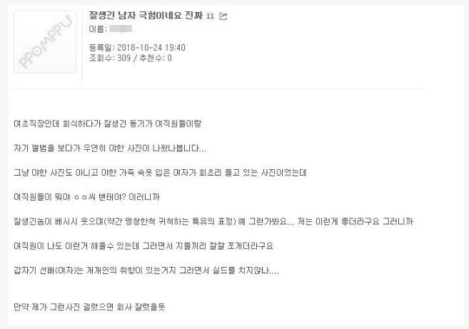 답댓글 작성자_Arondite_ 작성시간 19.09.27 Sampras 여자들이 상대적으로 사회적인 금기에서 조금 더 자유롭습니다. 특히 여초직장에 여자상사가 잘생긴 남자직원 상대로라면 더더욱.