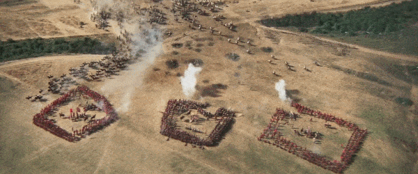 프랑스 기병대를 맞이하는 영국군 대기병 보병방진