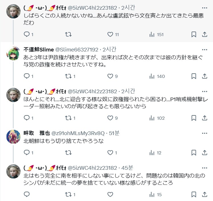 정말로 그랬으면 좋겠어요. 북한과 융합을 할려는 녀석에게 정권이 장악이 된다면 힘들지, P1초계기 사격 레이더 조사 같은 일이