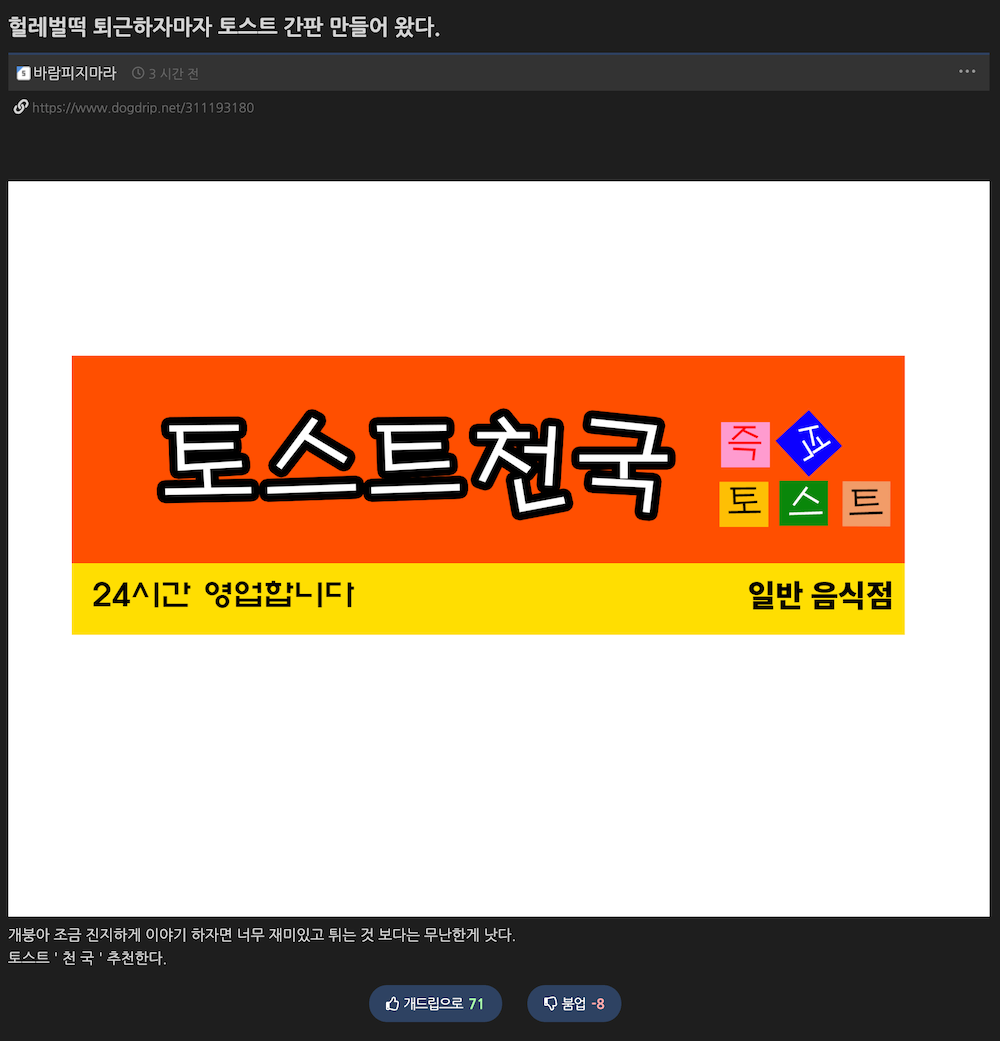 [스크랩] 커뮤에서 가게 이름 추천받으면 생기는 일 작성자가터벨트후작|작성시간24.06.24|조회수355 목록 댓글 4 글자크기 작게가 글자크기 크게가 다음검색 스크랩 원문 : 이종격투기 현재 게시글 추가 기능 열기 북마크 신고 센터로 신고 댓글 댓글 4 댓글쓰기 답글쓰기 댓글 리스트 작성자BACCANO | 작성시간 24.06.24 ㅋㅋㅋ 참신한 아이디어가 많네요 작성자푸른잎새 | 작성시간 24.06.24 자쓰가리 왜나오는데ㅋㅋㅋㅋㅋ 작성자Dirus | 작성시간 24.06.24 이삭토스트를 이길수있나? 작성자캐리어 | 작성시간 24.06.25 저렇게 많은 능력자들이 방구석에서 커뮤를 하고 있다니!! 댓글 전체보기