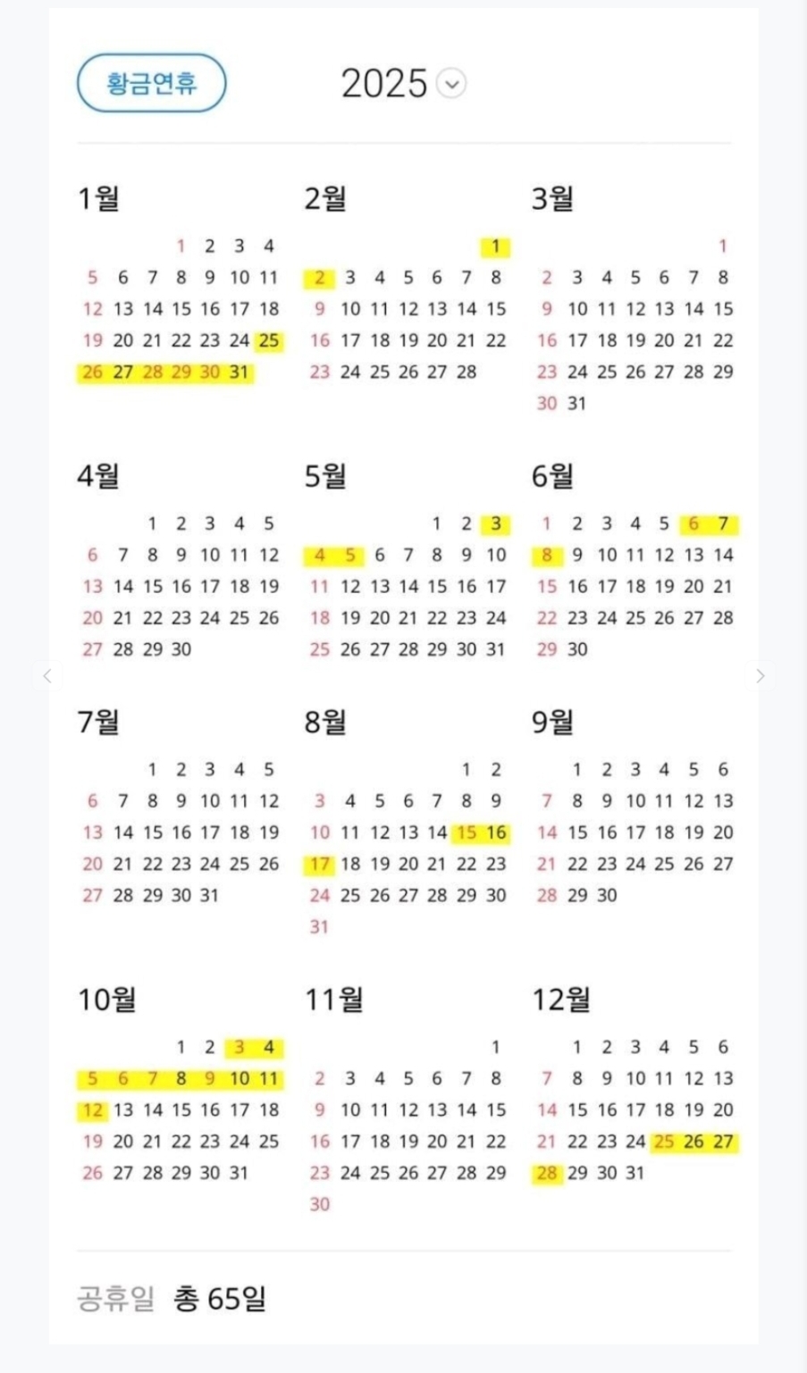 [스크랩] 2025년 법정 공휴일 작성자가터벨트후작|작성시간24.12.03|조회수230 목록 댓글 3 글자크기 작게가 글자크기 크게가 추석 대박 다음검색 스크랩 원문 : 챔피온쉽 매니저 - 대한민국 현재 게시글 추가 기능 열기 북마크 신고 센터로 신고 댓글 댓글 3 댓글쓰기 답글쓰기 댓글 리스트 작성자황초롱이 | 작성시간 24.12.03 작성자밸틴1 | 작성시간 24.12.03 이야!설날과 추석이 막상막하네요!ㅋㅋㅋ 작성자_Arondite_ | 작성시간 24.12.03 1. 5월 6일 대체휴일임. 석가탄신일과 어린이날 겹침.2. 10월 8일 대체휴일임. 추석 연휴가 일요일에 시작함. 댓글 전체보기