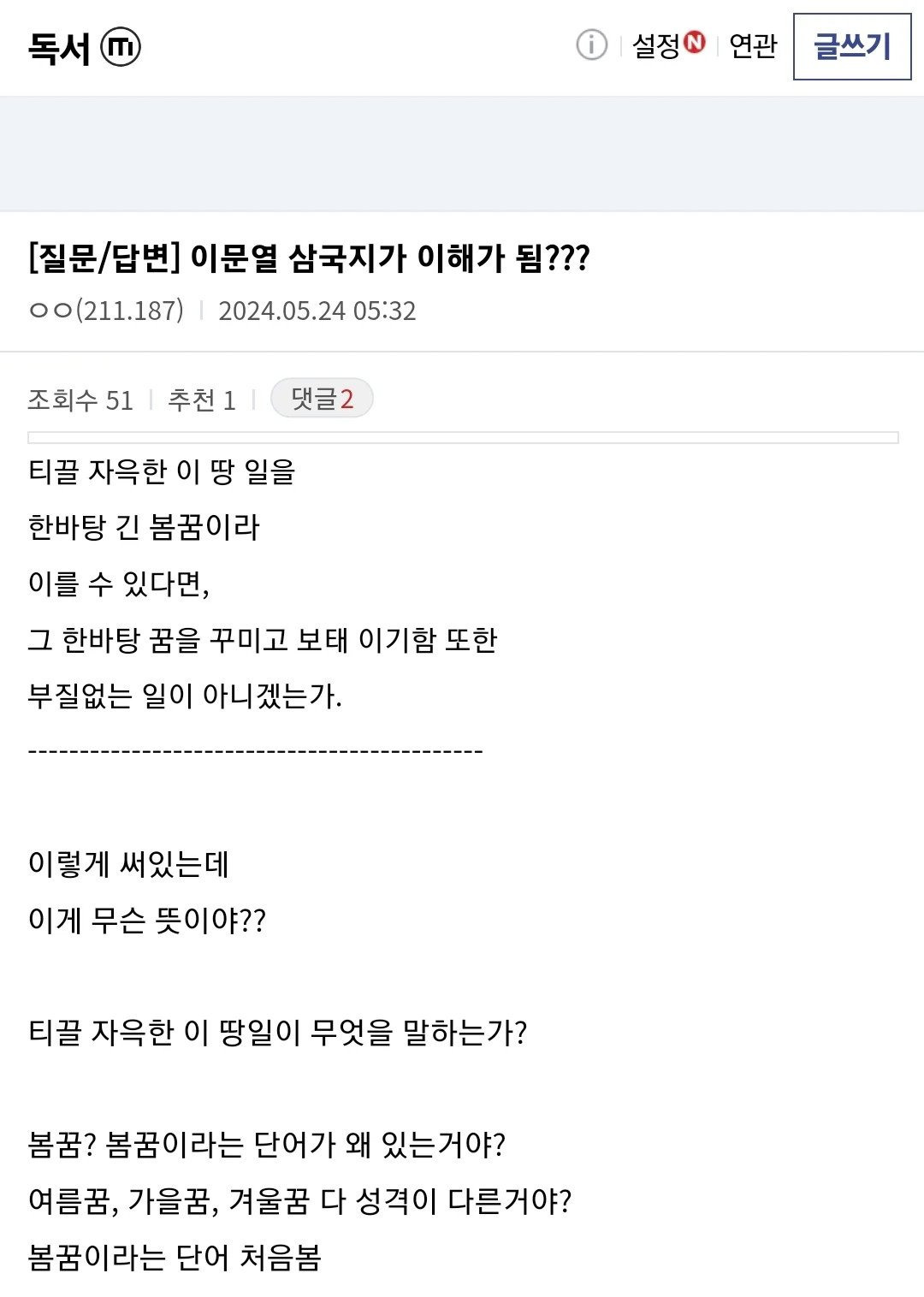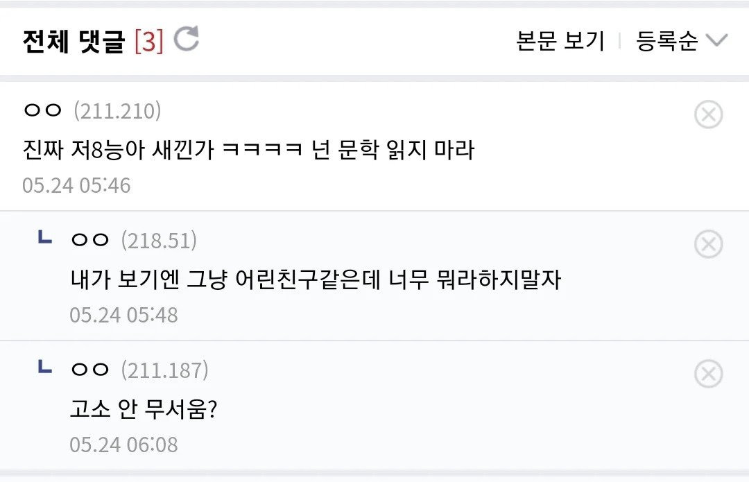 [스크랩] 이문열 삼국지 읽다가 이해 안가서 막힌 사람 작성자가터벨트후작|작성시간25.08.01|조회수343 목록 댓글 4 글자크기 작게가 글자크기 크게가 ㅊㅊ디시 다음검색 스크랩 원문 : 도탁스 (DOTAX) 현재 게시글 추가 기능 열기 북마크 신고 센터로 신고 댓글 댓글 4 댓글쓰기 답글쓰기 댓글 리스트 작성자_Arondite_ | 작성시간 25.08.01 이문열 삼국지 말고 어린이 만화삼국지부터 읽기를 추천하고 싶네요. 작성자soublaki | 작성시간 25.08.01 고소 안무서움이 킬포네 작성자여연하 | 작성시간 25.08.01 으에.....? 작성자클리퍼s | 작성시간 25.08.01 정중하게 문학지식이 모자라 해석하기 어렵습니다 라고 했으면 좋았을 것을.. 댓글 전체보기