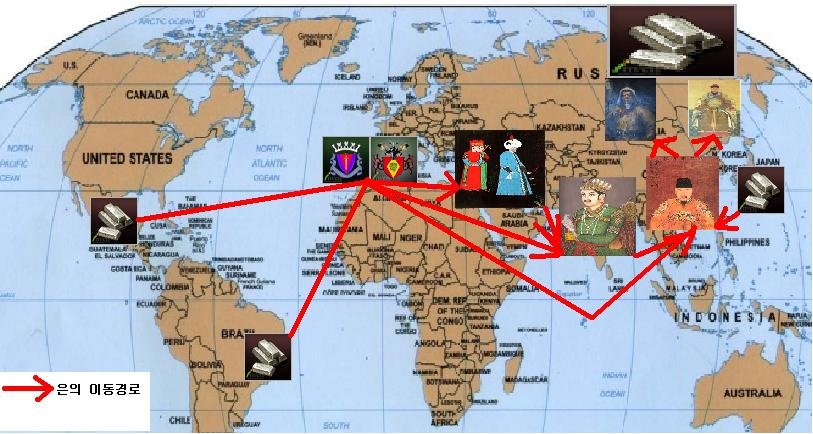 멕시코와 브라질의 식민지 은광산으로 부터 들어오는 은의 양은 당시 전세계 은 생산의 80% 이상 이었으며, 한해 약 1만톤 이상이 유럽으로 유입되었다고 합니다. 이를 바탕으로 유럽의 두 해양국가는 교역국가로서 발돋음 하게 되었다고 학자들은 설명하고 있습니다.