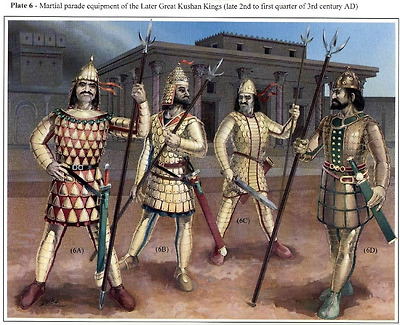 후기 대 쿠샨왕조의 지도자들의 장비들. (기원후 2세기부터 3세기 초반경.)