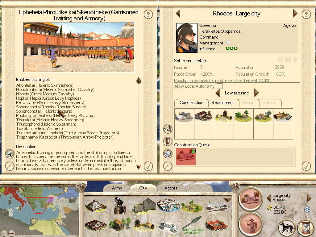 (다른 팩션이 로도스 섬에 최종 고유 배럭을 올린다고 해서 생산이 가능한지는 미확인입니다... 헬레닉 팩션은 시도해 볼만 하네요)