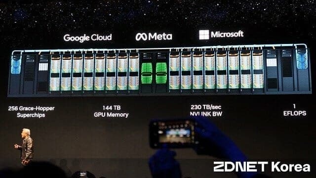 여담으로 아직까지는 빅테크들이 AI 서버 CPU로 인텔 x86 CPU를 사용하고 있긴 하지만, GPU 업체들은 지금 그 자리마저 넘보려고 하는 상황임. 최근 공개한 엔비디아의 수퍼칩 시스템인 GH200(Grace-Hopper-200)은 H100 GPU에 ARM Core 기반의 Grace CPU를 탑재하였음.