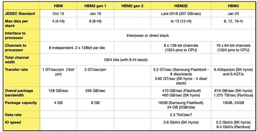 TSMC 7나노 공정 기반 엔비디아 A100 GPU에는 16Gb Die가 4개 Stack된 HBM2E 칩이 총 5개가 장착되었음. 그러면 전체 HBM 용량은 (16Gb=2GB)*4*5 해서 총 40GB임. 그런데 H100 GPU(TSMC 4나노)부터는 16Gb Die가 8개 Stack된 칩이 5개가 들어가서 80GB가 되었음. 그런데 AMD MI300A에는 이 HBM 칩이 무려 8개가 들어가서 총 용량이 128GB가 되었음. 이렇게 GPU 업체들끼리 경쟁이 붙으면 GPU당 HBM 탑재량은 더더욱 늘어나게 될 수밖에 없음.