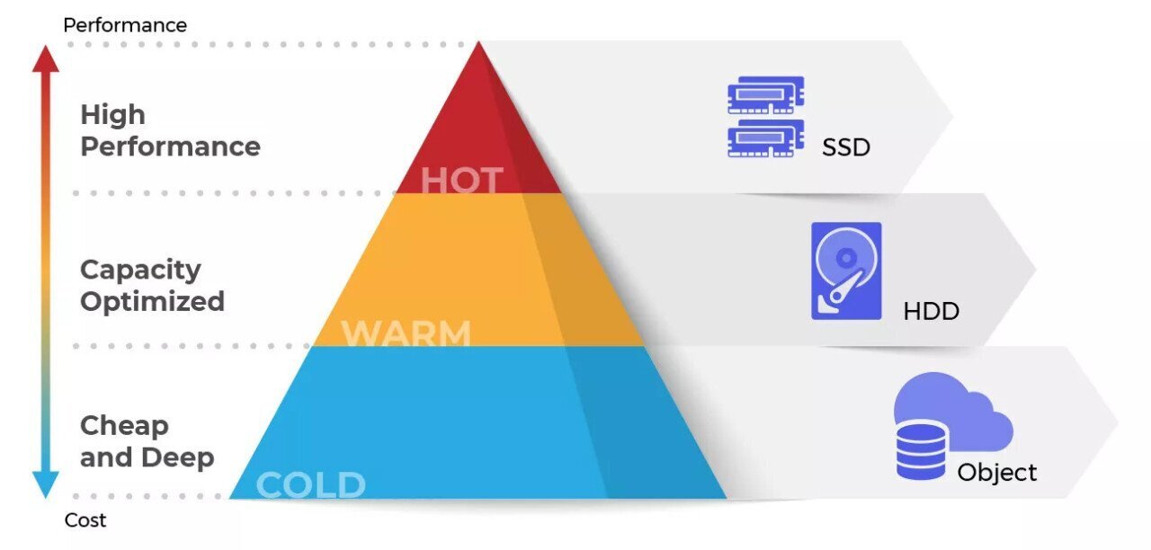 이 과정에서 자주 쓰이는 데이터를 Hot Data, 덜 쓰이는 데이터를 Cold Data라고 함. 스토리지도 속도에 따라서 저장하는 데이터가 다름. 예컨대 캐쉬 디램 SSD는 가장 Hotest한 Data를 저장하는 데 쓰이고, 그것보다는 느린 디램리스 SSD는 그것보다는 덜 쓰이는 Hot Data를 저장하는 데 쓰이고, 아주 느린 저장장치(자기테이프 등)은 Cold Data를 저장하는 데 쓰이는 것임. 여기에서 우리는 HDD를 Nearline Storage라고 부르는데, Hot Data와 Cold Data 사이(Nearline)의 Warm Data, 그러니까 적당히 상대적으로 덜 중요한 데이터를 저장하는 데 쓰임. 당연히 Hot Data를 저장하는 SSD보다는 느리지.