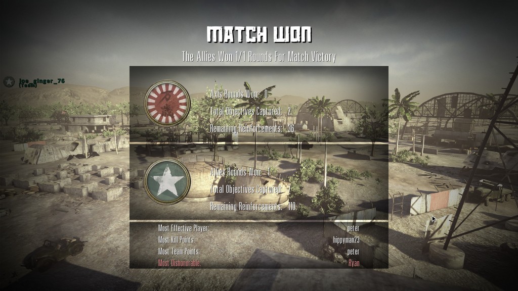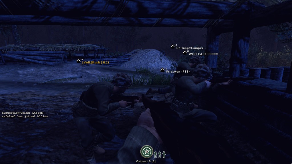 이건 야간맵으로 시야가 정말 제한되어있고 수풀이 빽빽하기 때문에 진짜 미군에게는 어려운 맵입니다. 특히나 반자이 돌격 좋아하는 플레이어들에게는 이 맵은 꿈의 맵입니다. 어둑어둑해서 뭐가 뭔지 당최 보이지가 않거든요.