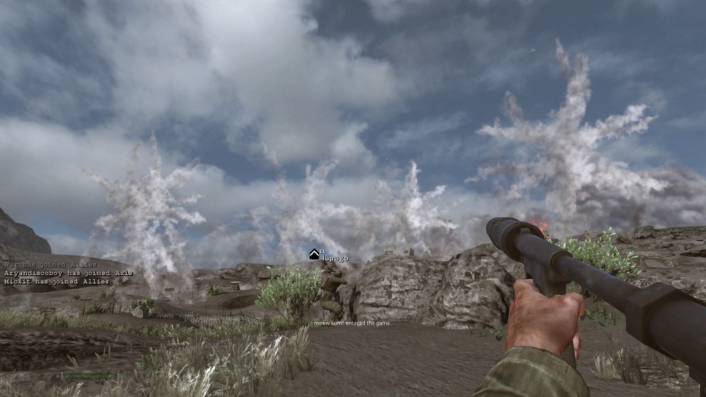 주변에 포탄이 떨어지거나 총알이 스치면 이렇게 시야가 흐려지는데 이때는 잠시동안 정밀조준(쉬프트키를 이용한)을 할수가 없습니다.