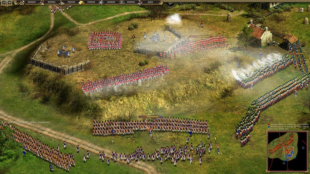 한가지 달라진 점이 있다면 전작들에선 무조건 장교와 군악대가 있어야 대열이 만들어 졌지만 코삭2는 장교 없이 병사들 만으로 120명이 모이면 자체적으로 대열을 갖추는 것이 가능합니다 그러면 장교와 군악대는 기수 는 필요 없는 것이 아니냐? 할수도 있겟지만 장교와 군악대 기수를 추가적으로 해서 대열을 갖추면 유닛들에 사기가 증가 하게 됩니다 이점에 대해전 전투에대해 설명 할때 보충하도록 하겠습니다 그렇기에 장교나 군악대 기수는 사관학교를 지어야만 생산이가능하기에 초반엔 생산 할수 없으므로
